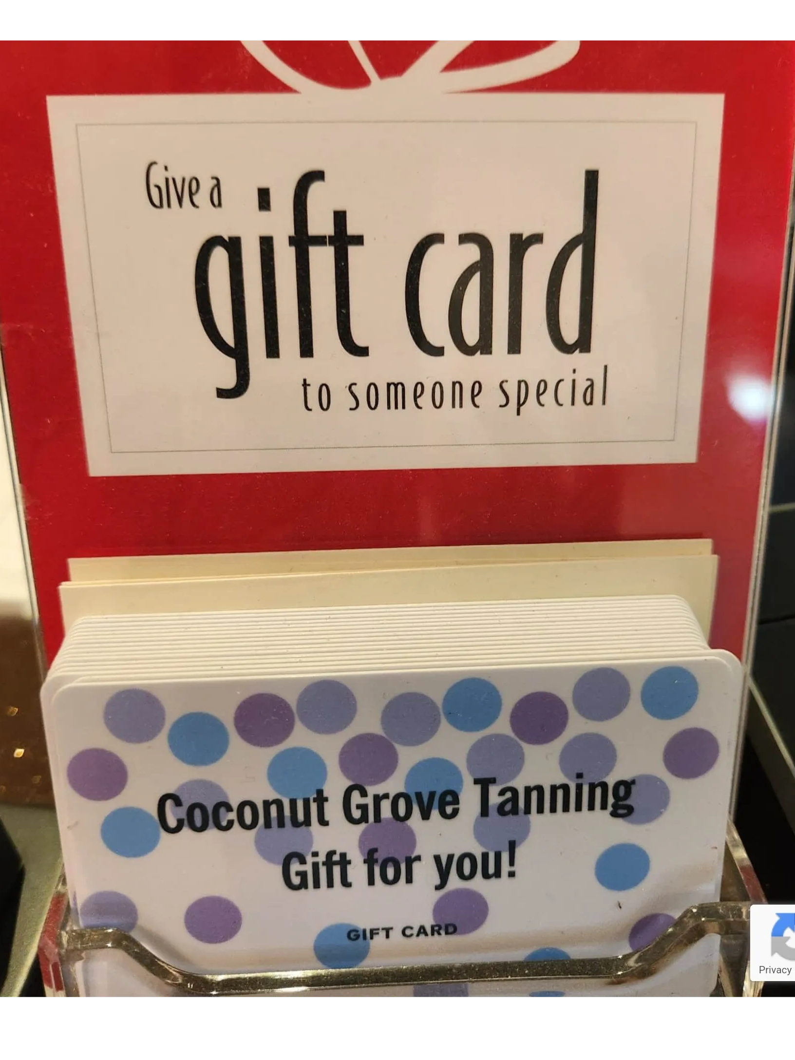 Give the gift of beauty and relaxation with our coconut grove-tanning gift cards. Perfect for any occasion!